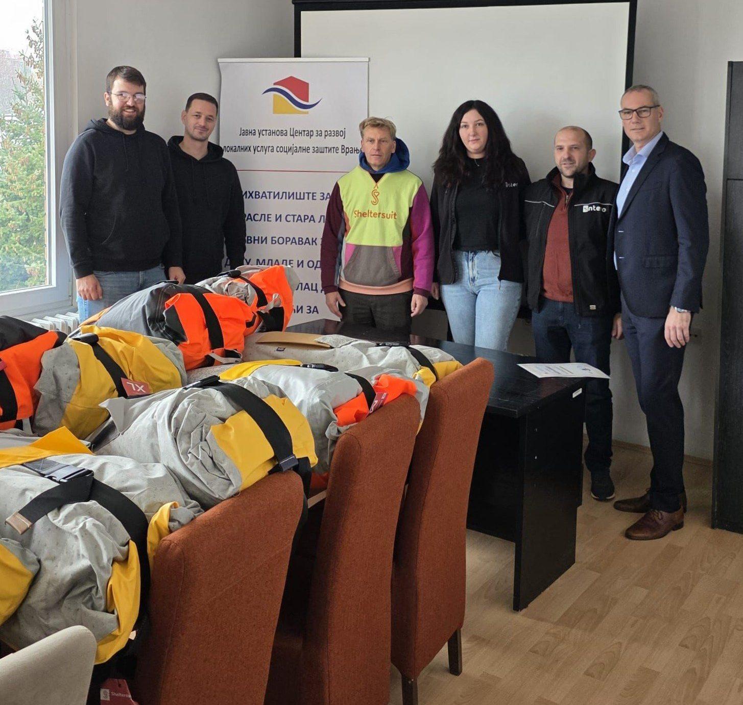 After earlier distributions in Lyon, Toronto and Calgary, our most recent initiative took place in Vranje, Serbia. 60 Sheltersuits were handed out to people in need, coordinated locally by our Serbian colleagues together with Bart Nijsink from the Sheltersuit Foundation and the regional support organization CSZVR. Their dedication ensured the Sheltersuits reached those who rely on this support during difficult circumstances.